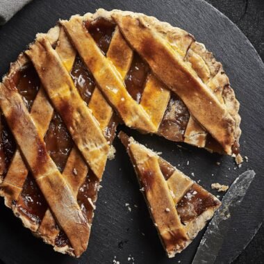 - Slice the apple and add arrange the pieces on the top of the paste.